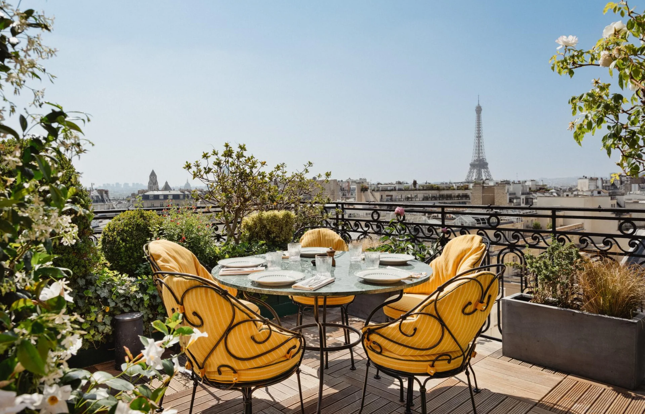 L'Hôtel Raphael, emblématique de l'élégance parisienne, dispose d'une magnifique terrasse sur le toit, offrant une vue spectaculaire sur la Tour Eiffel et les toits de Paris. C'est un lieu idéal pour déguster un café ou un cocktail, tout en profitant d'une ambiance chic et sophistiquée. La décoration est raffinée, et le service est impeccable, faisant de cet endroit un choix privilégié pour une pause gourmande dans un cadre luxueux.